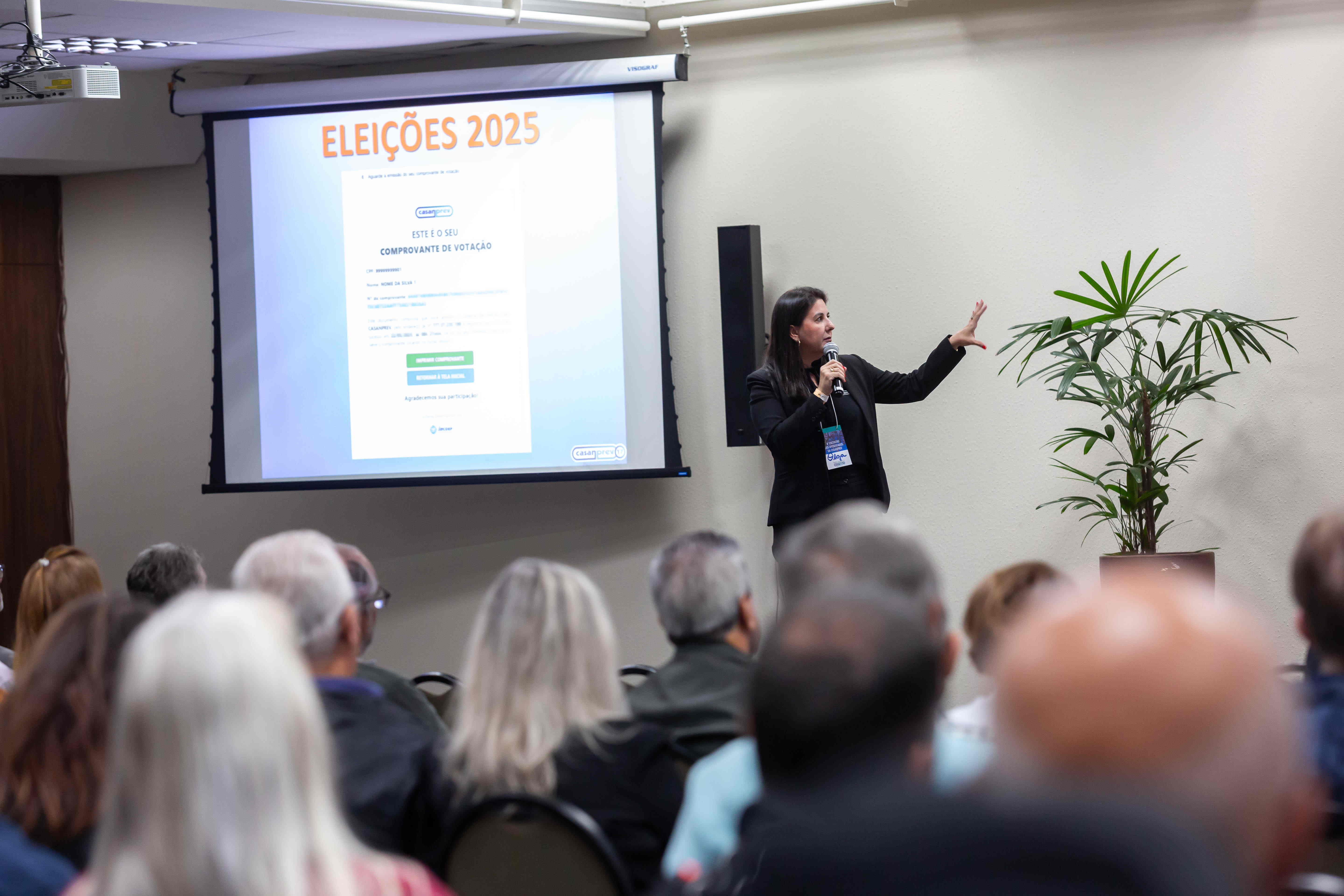 A gerente geral da CASANPREV, Olga Bastos, fez uma apresentação sobre o processo eleitoral da Fundação. Ela detalhou o passo a passo da votação eletrônica, reforçando que o voto é um instrumento fundamental para fortalecer a governança e a representatividade institucional. O tutorial de votação já está disponível no site da CASANPREV.