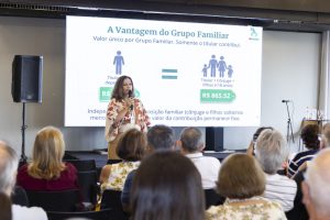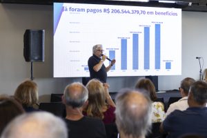 A apresentação completa do plano Futuro Melhor coube à atuária Karem Tressino, consultora da Lumens Atuarial. Ela detalhou as principais características do Plano CD “Futuro Melhor”, modelo de Contribuição Definida (CD), no qual o resultado previdenciário está ligado ao saldo acumulado e à rentabilidade dos investimentos.