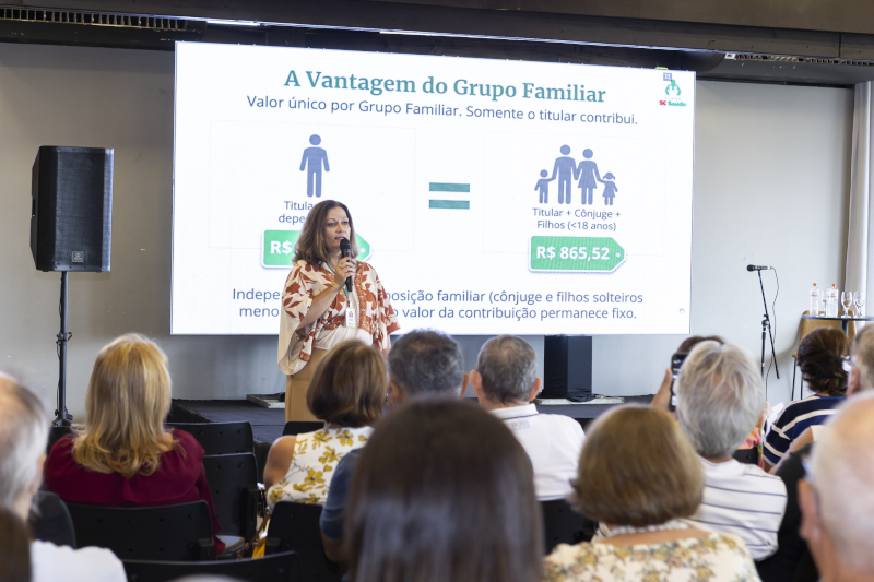 Roseane detalhou as coberturas médicas e hospitalares, valores de mensalidades e coparticipações, entre outros dados técnicos. O SC Saúde é o plano de saúde do estado de SC, que agora permite a adesão de inativos em contextos previstos na legislação, incluindo casos em que o Estado detenha (ou tenha detido) participação acionária, situação que contempla o público vinculado à CASAN/CASANPREV.